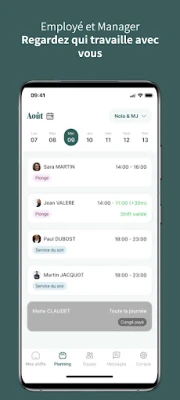 Cette application est dédiée aux employé·es et manager·euses des équipes des restaurants, hôtels, boulangeries, pharmacie, et magasins qui sont abonné·es à notre solution de planification et de gestion RH.