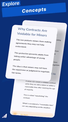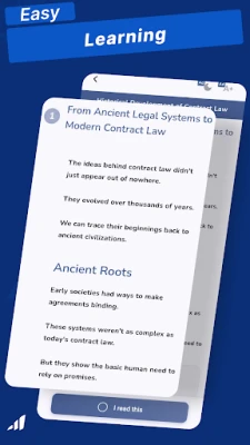 • Organized Learning Path: Learn key topics such as offer and acceptance, consideration, and breach of contract in a structured flow.