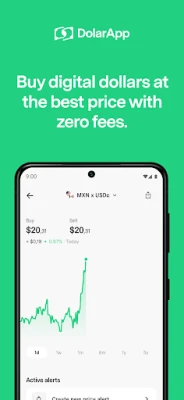Buy digital dollars at the interbank rate, and hold them in your DolarApp account. Check current and historical prices in real-time in the app. Open an account in seconds to protect yourself from volatility and forget about peso devaluation. Send and receive digital dollars instantly and free of charge to any contact who has a DolarApp account. Each digital dollar in your DolarApp account can be exchanged for one U.S. dollar at a U.S. bank.