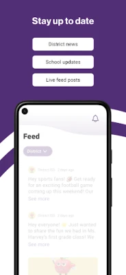 DISTRICT UPDATES In the Live Feed is where you’ll find updates from the administration about what’s going on in the district right now. Whether that’s celebrating a student’s success, or reminding you about an upcoming deadline.