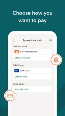 You can pay with any payment method: bank account, credit card, debit card or FSA/HSA card, as long as your merchant accepts it.