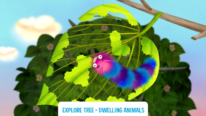 All animals live on a separate floors of the forest tree and offers six different mini toddler games. While playing different levels, children will get to know many fun facts about nature, forest ecosystem and inhabitants, such as caterpillar, hedgehog, mole, owl, squirrel and others: what they look like, what they eat and how they get their food, when they sleep, where exactly they live - in the branches, on the leaves or under the ground, and much more.