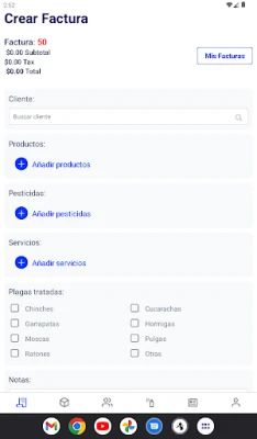PestPro es una herramienta esencial para el negocio de control de plagas. Centraliza facturas y cotizaciones, ofrece vistas detalladas de transacciones con clientes y agiliza la facturación mediante envíos de correo electrónico. Optimiza y simplifica las tareas diarias, todo disponible en un solo lugar.