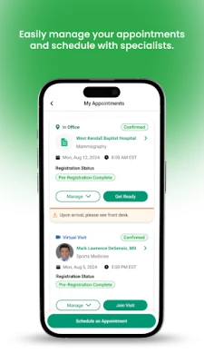 • Take control of your healthcare with self-scheduling and management of primary care and other appointments, no phone call needed.