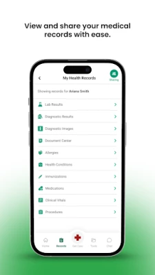 • Easily review and share medical records, test results, and immunizations all in one place.