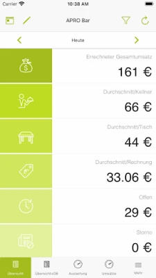 Mit APRO® Reports haben Sie Umsatz, Auslastung, Tische, Kellner oder Renner/Penner all Ihrer Betriebe jederzeit übersichtlich am Smartphone.