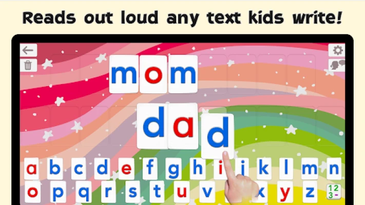 • A talking Movable Alphabet that allows young kids to experiment with phonics and learn word building thanks to the advanced text to speech engine.