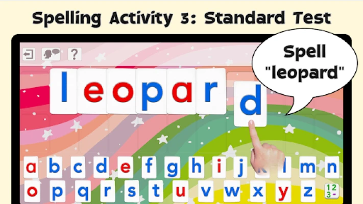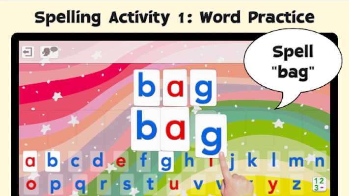 1 - "Word Practice" says and displays the word to spell, and asks the child to spell it using the talking movable alphabet allowing the child to learn the spelling easily